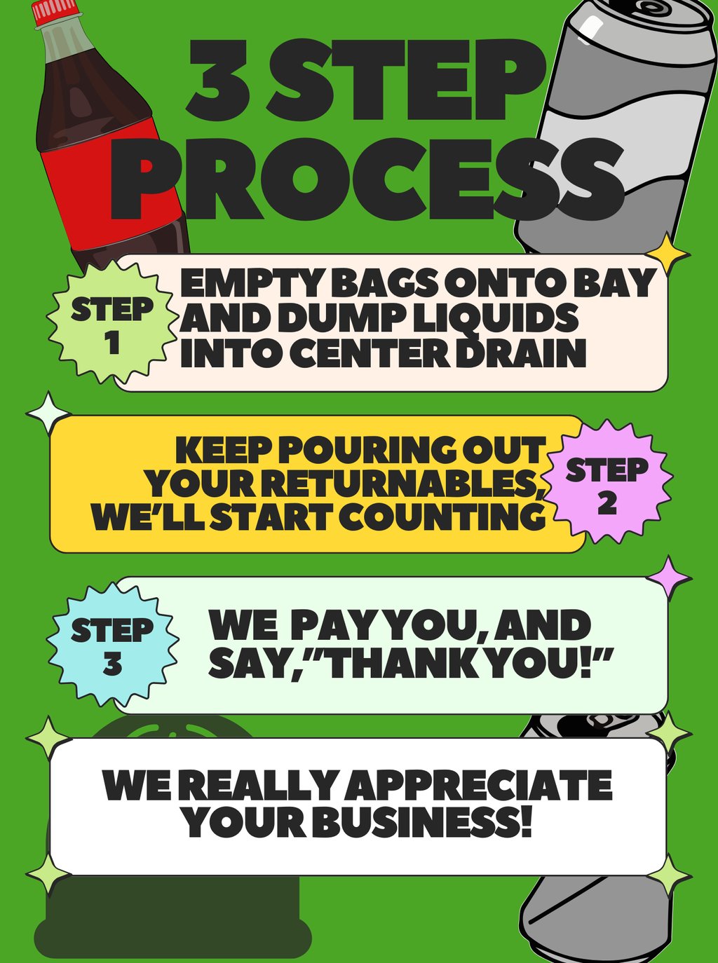 A friendly and inviting spot to return your bottles and cans for cash.